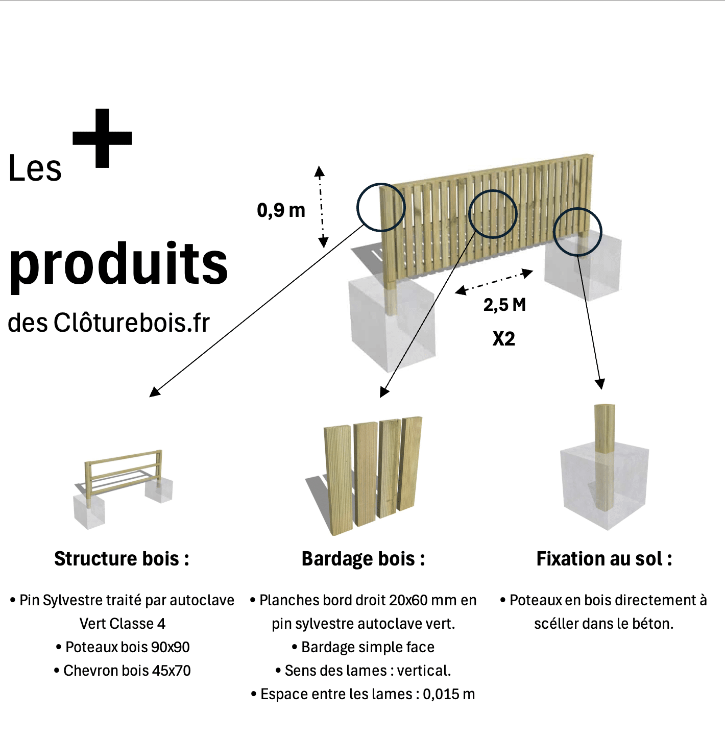 🔨 Clôture bois – Modèle moderne fabriqué en France
